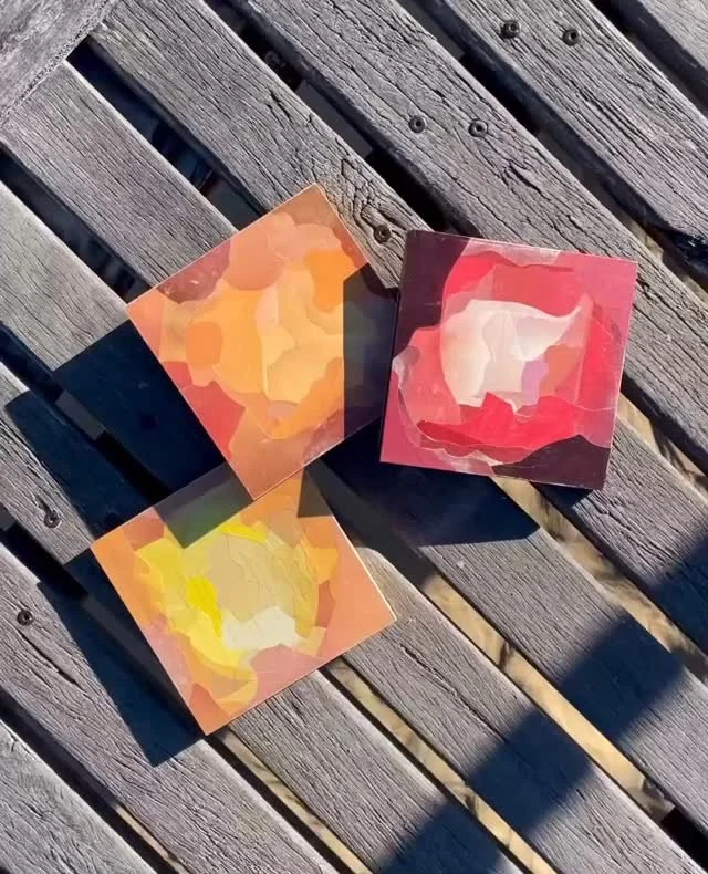 Leah Ann Early (LA Early) is a contemporary collage artist specialising in colour studies and relationships. Originally from Virginia, USA, she now shares her time at residences in Austinmer and Narooma, NSW. An original member of the Sydney Collage Society, Leah has a passion for collage in all forms, curating group shows and exhibiting in various galleries and museums in NSW and abroad. She uses both vintage and modern publications to source materials for her collages, renewing recycled print to create colour fields that modulate through shape and tone, texture and layering.